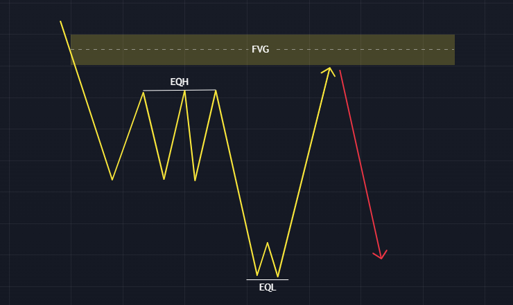 • Equal Highs/Lows (EQL/EQH): Los picos o doble techo son niveles obvios de liquidez que el precio busca barrer.