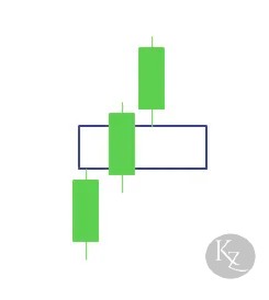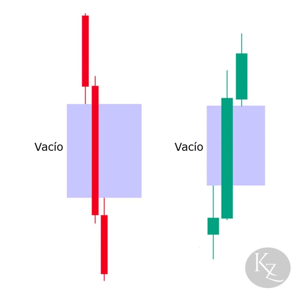 - El hueco se forma entre la mecha superior de la vela 1 y la mecha inferior de la vela 3.