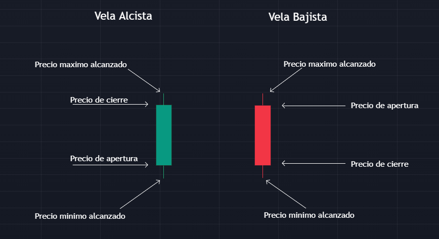 Las velas se componen por tener un alto, un mínimo, una apertura y el cierre